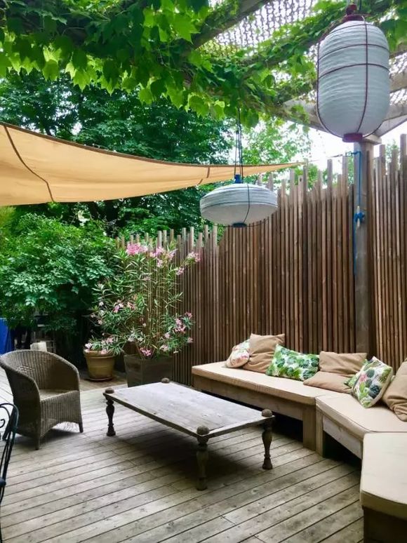放在花園的沙發(fā)需要長(zhǎng)期經(jīng)受日曬雨淋的考驗(yàn),需要使用專業(yè)的戶外家具,可以選用防腐木、藤木、竹類材質(zhì)的休閑沙發(fā),如果你喜歡布藝靠墊,等不需要的時(shí)候收回室內(nèi)即可,如果庭院不夠大,桌椅也最好選擇折疊式的,不用時(shí)可以收起來。