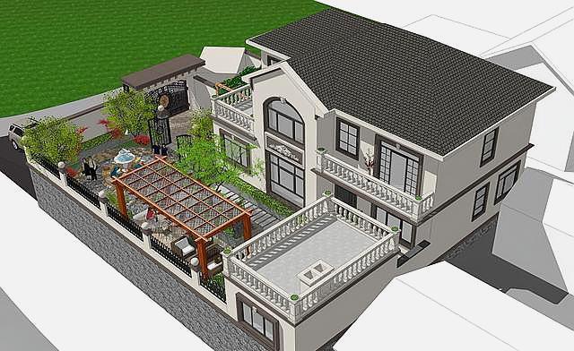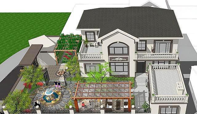 農(nóng)村兩層歐式別墅花園設(shè)計(jì)
