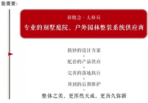 別墅庭院、戶外庭院整裝定制屬于建筑行業(yè)的新興市場(chǎng),對(duì)品質(zhì)有著高要求、審美有一定層次、消費(fèi)能力強(qiáng)的客戶群體對(duì)此類服務(wù)有深刻需求。因此,庭院整裝模式能有效解決了設(shè)計(jì)、施工品控環(huán)節(jié)問(wèn)題,讓客戶更加省心;也讓經(jīng)銷商能多接大單。