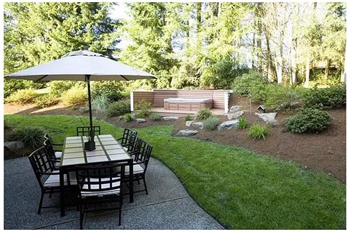 在別墅庭院中,需要設(shè)計(jì)像矮墻、平臺(tái)、廊架、涼亭等構(gòu)筑物。別墅庭院的不同高度、形式的矮墻可以作為座椅的擋墻;一個(gè)原木搭建的亭式構(gòu)筑物、平臺(tái)則可以用來(lái)觀景或休息之用。