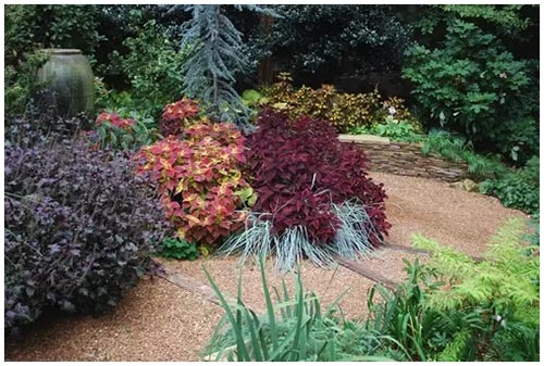 另外,庭園色彩也是影響庭園風(fēng)格的因素之一,對色彩規(guī)劃的一個技巧是根據(jù)建筑色彩與周圍環(huán)境確定庭園的主色調(diào)。觀葉植物在別墅花園的設(shè)計中很重要,在英國等歐洲國家,認(rèn)為花壇中栽種些觀葉植物是很自然的事情。此外還可考慮還有葉形的變化、質(zhì)感的差異等??傊?,庭院樣式及所栽培植物種類應(yīng)根據(jù)家庭人員組成與年齡結(jié)構(gòu)有所選擇,同時也要遵循一定的形式原則。