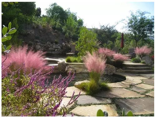 美式園林風(fēng)格在景觀表現(xiàn)上常常比較隨意、簡潔,特別是住宅庭院往往比較開放。與繁復(fù)冗長的傳統(tǒng)歐式風(fēng)格相比,更傾向于自然樸質(zhì)特征。這種園林風(fēng)格在其他國家所呈現(xiàn)出來的特點(diǎn),是在庭院中通過栽植一些地被花草,或結(jié)合當(dāng)?shù)厍闆r,在景觀材料的運(yùn)用上選用當(dāng)?shù)氐囊恍┨烊徊牧匣蚴淖鳛榈孛婧蛪w的裝飾來體現(xiàn)自然式的美式園林風(fēng)貌。