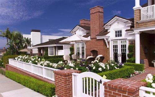 一直以來,吊盆花草最常見懸于門前或廊下,它們盛開的高度恰與我們的視線齊平,因此很容易形成注視焦點。垂吊花草的門前設(shè)計讓花園親切而友好,既吸引著路人的目光也似乎在表達著主人的歡迎之意。有必要注意的是:門前的懸掛花盆不在多,而在于畫龍點睛的效果。雷同的懸掛會有生硬感。