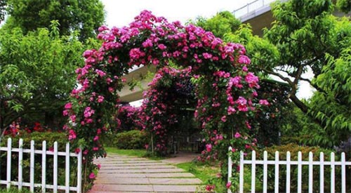 2、拱門:拱門是歐式庭院必不可少的元素,它不僅可以作為區(qū)域分割的工具,更是很美麗的裝飾。如果不喜歡爬滿藤蔓的鐵藝拱門,在入園處裝一扇木質(zhì)拱形門也是不錯的主意,它可以讓你的庭院看上去似曲徑通幽,同時要注意旁邊籬笆和灌木的高度、密度與拱門類型配合。