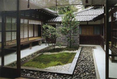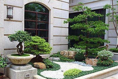 而庭園不論大小,道路的鋪裝是必不可少的,一般的庭院可用天然石材或者各色地磚、黑白相間的鵝卵石鋪就。