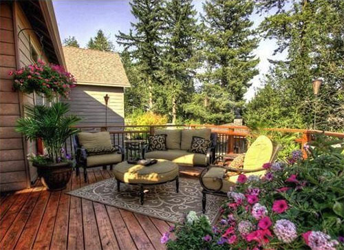 地板上鋪上防腐木或者復(fù)合木材,作為房子擴(kuò)展生活的空間,種上花和植物變成后花園,春天來臨時(shí)花兒盛開非常漂亮,而且還有撲鼻的香味,給我們帶來美的享受。