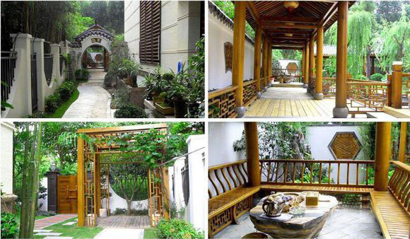 木頭是最貼近自然的裝修材料,花園中的露臺、涼亭又或是柵欄可選用防腐木,不但可防腐、防蟲、防水,還會給人帶去質(zhì)樸、溫馨、清新自然的感覺?;▓@東南角L型涼亭平臺可謂院子里最舒適的空間,這里是一家人室外休閑的聚集地。假日時邀親友在自家庭院聚餐、喝茶、品酒,談笑中釋放生活壓力,好生愜意。