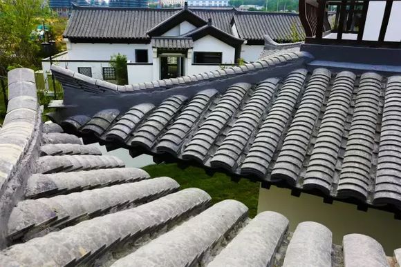 采用陶土燒制的高密實(shí)度瓦片,四層瓦片全部采用人工鋪設(shè),以保證不滲水漏水。