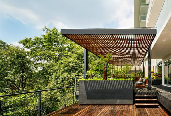 有防腐木地臺(tái)和廊架的山頂別墅花園,真正的吸氧福祉地