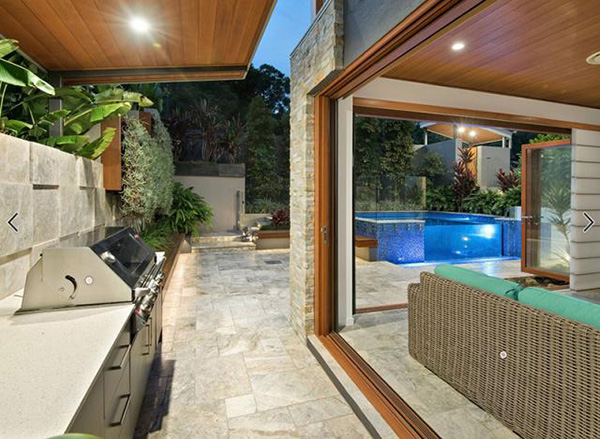 從泳池看別墅起居室