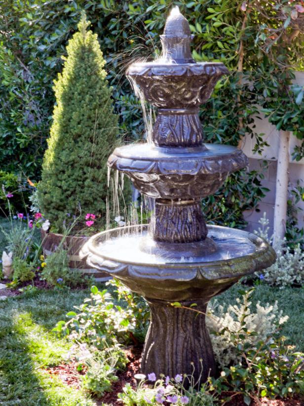 2、一個小小的噴泉水景便能為你的別墅花園帶來靈氣。俗話說“有水則靈”,水能夠讓你的別墅花園更具生氣、活潑。當(dāng)然如果你別墅花園的場地和你的裝修預(yù)算允許的話,可以建造一套更復(fù)雜完美的水景系統(tǒng)。就算不能如此,你也可以像上圖一樣在進行家庭別墅花園設(shè)計裝修時,設(shè)置一個小巧精致的噴泉水景,這依然能夠為你的別墅花園營造出非常不錯的效果。尤其是在規(guī)整式花園中,放置在軸線的終點可以成為一個完美的視覺焦點。