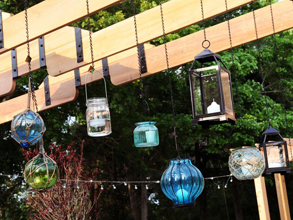 7、創(chuàng)意燈飾。別墅庭院照明設(shè)計是非常重要的一個環(huán)節(jié),燈飾不僅僅是起到照明作用,更要起到裝飾性。如果你想讓你的別墅花園顯得清新可愛一些,不妨嘗試一下像上圖案例中這樣的DIY創(chuàng)意燈飾。燈串你、燈籠這些很容易就可以在網(wǎng)上購買到,甚至你還可以利用平時家里的一些瓶瓶罐罐來DIY成創(chuàng)意燈飾。自己動手制作的物品,會有一份特殊的成就感哦。