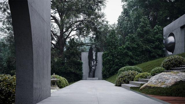 在郁郁蔥蔥的花園中,優(yōu)雅的雕塑莊嚴(yán)地坐落