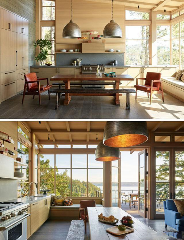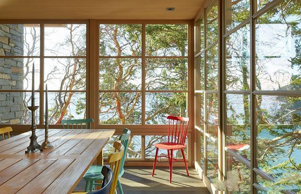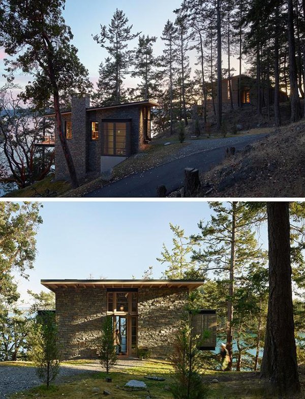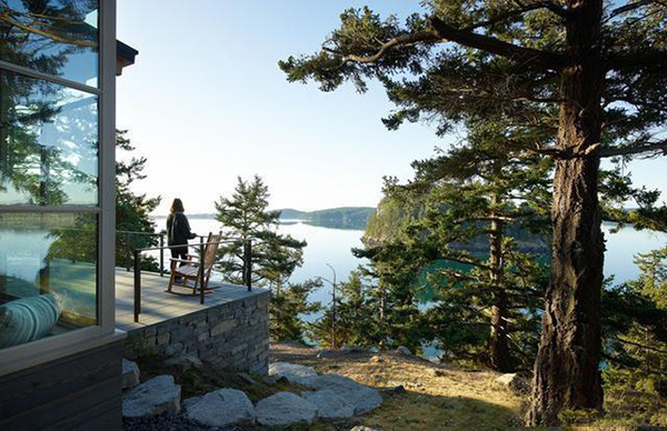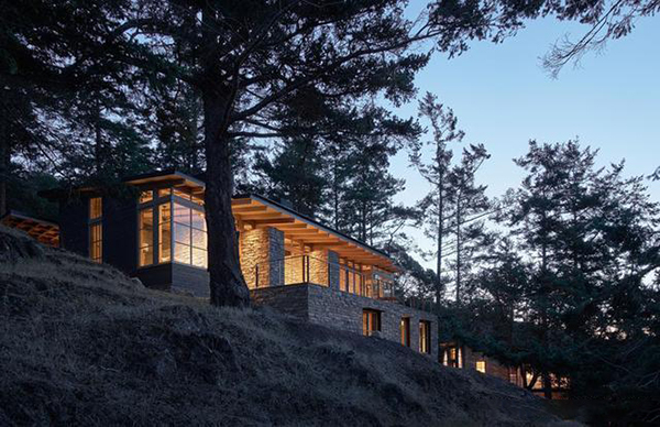 建筑師設計了一個主屋和一個副旅館小屋,充分利用華盛頓州普吉特海灣的自然景色,可以一覽無余的眼前的美景,主屋位于一個高聳的山坡上的小高原上。