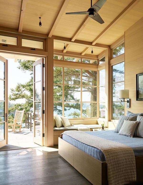 主屋的主臥室采用與廚房相似的設計,配有靠窗的座位,相當于現(xiàn)在人們喜歡的飄窗設計,高傾斜的天花板和通往室外的跳臺甲板的通道。