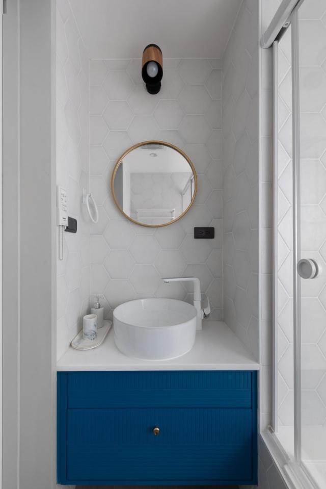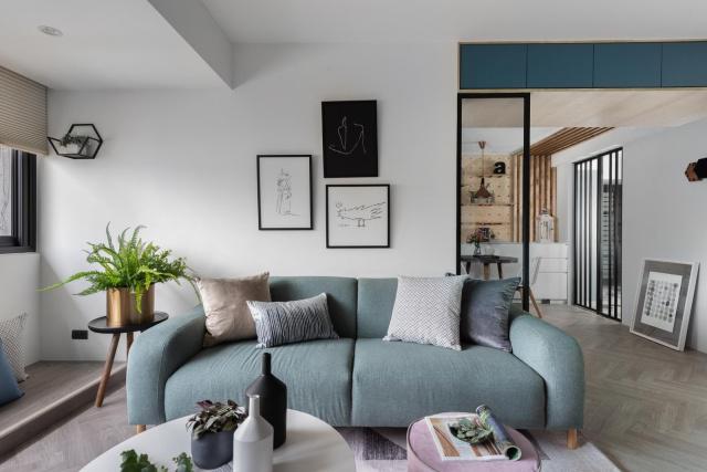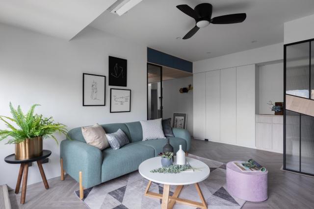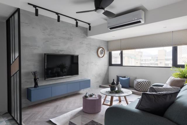 客廳中的布置真的超簡(jiǎn)單,干凈利索又很整潔,軟裝的搭配精致小巧,非常小清新,很有生活的氣息??蛷d里比較特別的設(shè)計(jì)應(yīng)該是電視墻,灰色的水泥效果彰顯了個(gè)性和質(zhì)感,很有范兒,搭配藍(lán)色的懸空電視柜真的超耐看。兩居室的客廳比較小,所以用的是壁掛式空調(diào),這樣也比較節(jié)省空間,除了空調(diào),客廳還安裝了吊扇,而且吊扇也是客廳燈,有兩用的效果,這樣就能享受自然風(fēng)了。