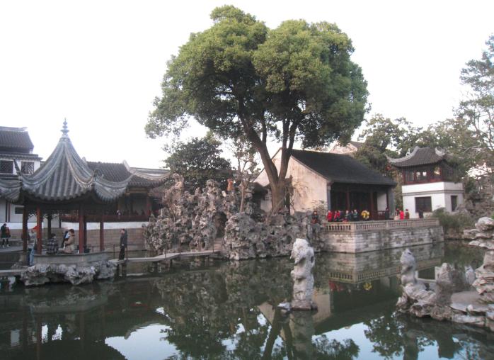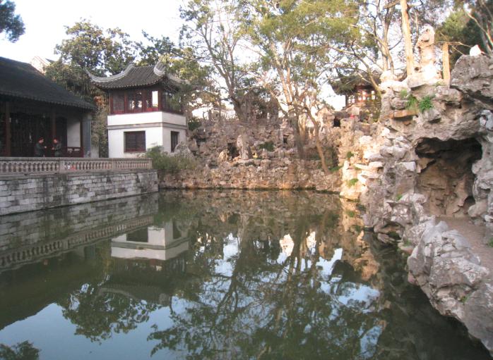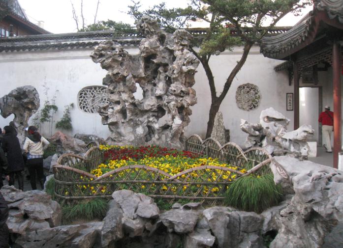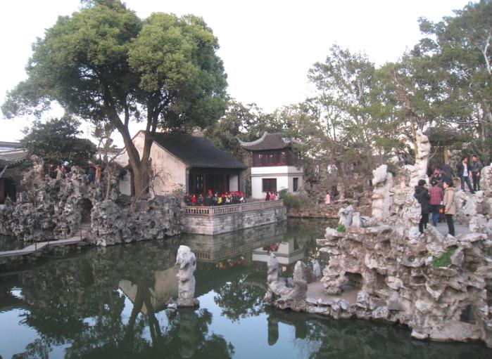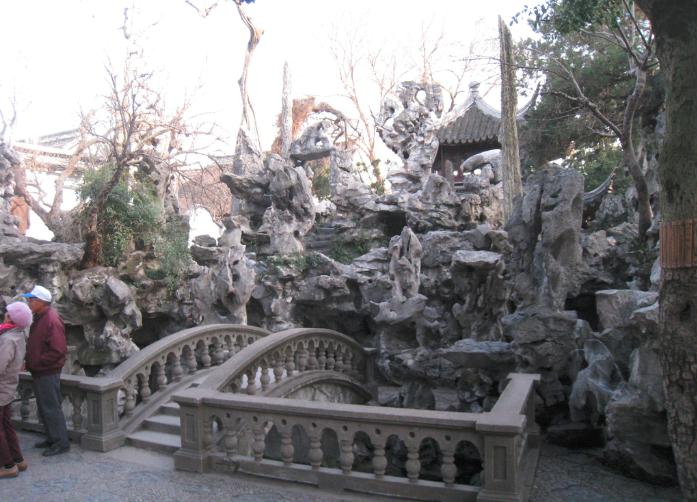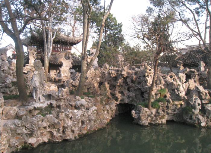 獅⼦林最著名的假⼭群(太湖⽯所組成)