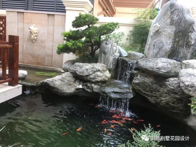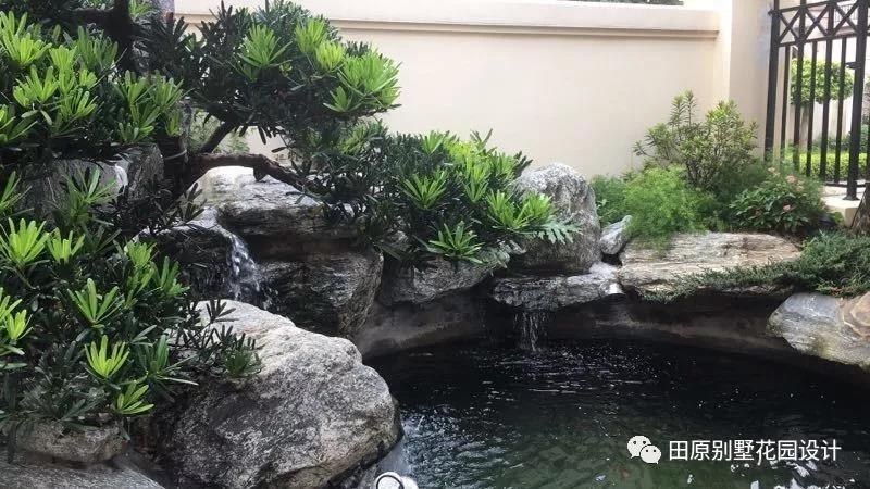 智者樂(lè)山,仁者樂(lè)水。古詩(shī)云:山不在高,有仙則名;水不在深,有龍則靈。自然山石精心打造的假山錯(cuò)落有致,形態(tài)迥異又不失趣味的疊石之山,搭配著周?chē)木G植小景,假山旁站立羅漢松,蔥翠清雅,蒼勁高潔。朝而往,暮而歸,行者休于樹(shù),漸聞水聲潺潺而瀉出于石峰之間,臨溪之魚(yú),溪深而魚(yú)肥。有山,有水,有魚(yú),有花的庭院想想就覺(jué)得特別愜意。