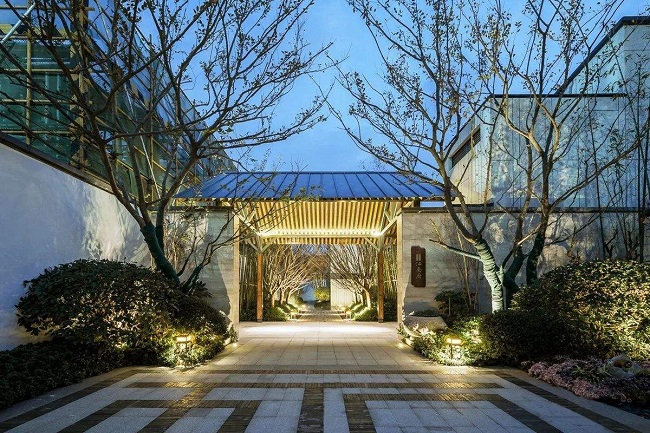 兩株或兩叢相同或相似的樹,按照一定的軸線關系,使其互相呼應的種植形式,稱之為對植。常用于園門、建筑入口、橋頭、假山登道等視覺突然收窄的空間。樹種一般選擇整齊優(yōu)美、生長緩慢的樹種,常綠樹為主。在自然式栽植中,也可以用兩個樹叢形成對植,這時選擇的樹種和組成要比較近似,栽植時注意避免呆板的絕對對稱,但又必須形成對應,給人以均衡的感覺。