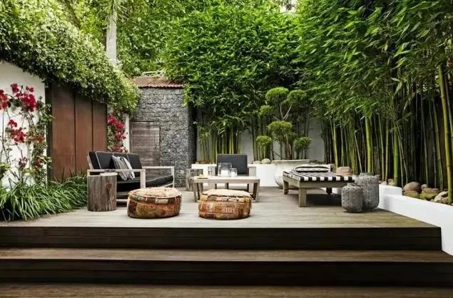 竹類也可以使用群植、叢植、列植、隅植、孤植等設計手法。其中高竹類可以配置竹林、竹莖,或與墻體、景石搭配組合;矮生竹類可作為地被類植物使用。