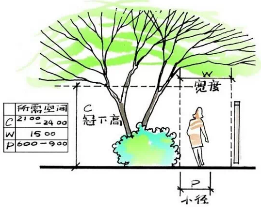與圍墻、花架、樹木枝下高、護(hù)欄、花灌木,