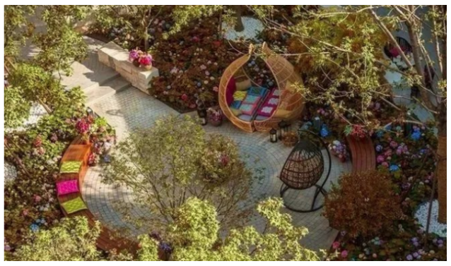 花叢式的布置植株低矮可讓人感到空間比實(shí)際面積大有較好的活動(dòng)和觀賞效果。