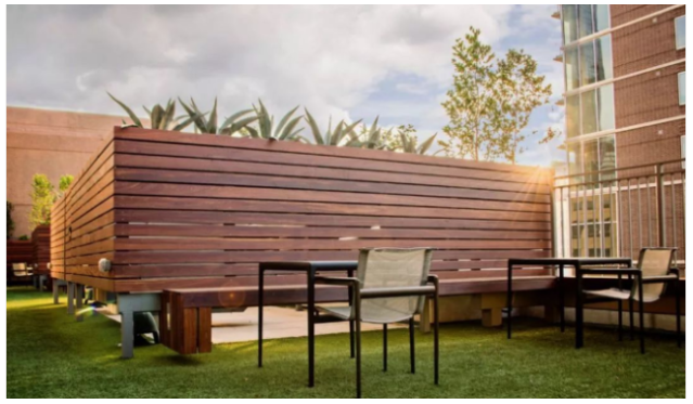 留下的空間可鋪設(shè)地坪放置搖椅、桌凳、陽傘等供人休息、小憩。