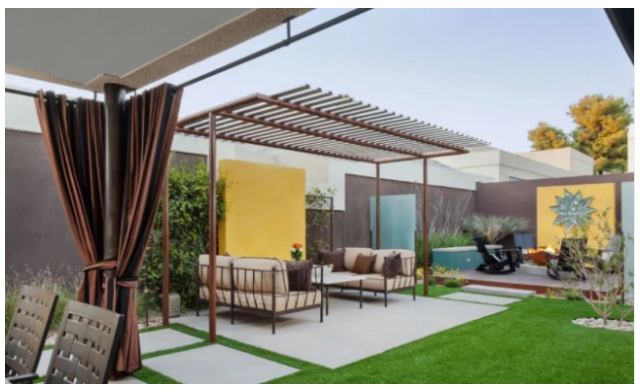 庭院風(fēng)格多種多樣,但現(xiàn)代主義則體現(xiàn)了一種樸素的美感,即追求自由,奔放與氛圍。 這種庭院主要通過引入新的裝飾材料,添加簡(jiǎn)單抽象的元素,大膽地對(duì)比小物件的顏色等來突出庭院的清新和時(shí)尚。