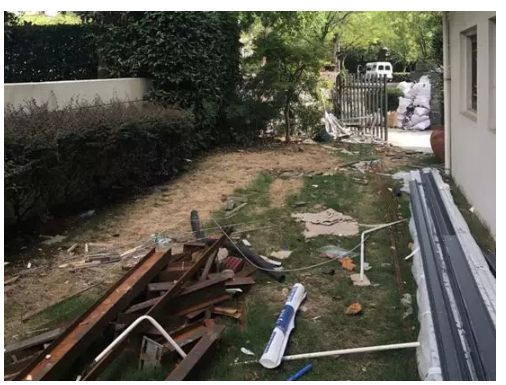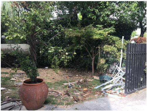 改造前的入口處,大盆栽也缺乏美觀,地面的垃圾已經(jīng)很難清理。原有的房屋建筑,把花園分成了狹小細(xì)長的兩段。面對(duì)這些的問題,設(shè)計(jì)師另辟蹊徑,將所有問題巧妙化解。