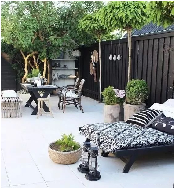 但是,花草樹木應遠離房屋,以免綠色植物遮擋室內光線。 院子里的植物應定期照料,以清除枯死的樹枝和樹葉,使我們的院子看起來干凈整潔,有一定的隱私,又不失透亮。