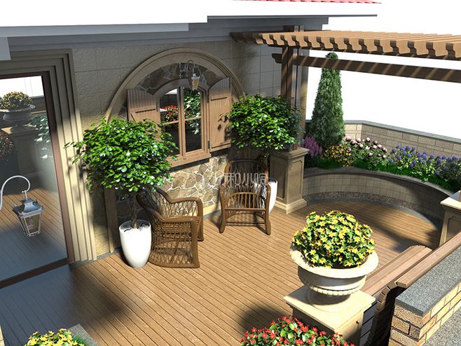 庭院設(shè)計主要以休閑庭院為主,主要通過在自家的大型露天陽臺上打造了一款極具休閑功能的功能區(qū)。該功能區(qū)結(jié)合了自然之物以及現(xiàn)代工藝進行設(shè)計,給人們傳遞出一股極具時尚氣息的空間。